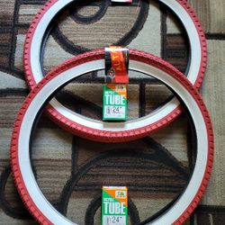 NEW Bicycle Bmx Cruiser Tires 24" Red Whitewall Diamond Pattern$35Bell Gardens, CA