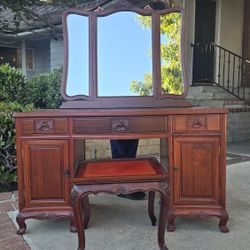 Vintage Solid Wood Vanity Desk w/ Tri-Fold Mirror & Bench – French Provincial Style$450Monterey Park, CA