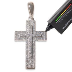 Moissanite Cross Crucifix Pendant Men Women Italy 925 Sterling Silver, 14K White Gold 5X Layered, Jesus Christ Pendant, Passes Diamond Tester$149Los Angeles, CA
