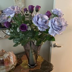 Purple Floral Vase And Flowers $35Palmdale, CA