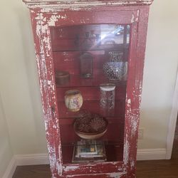 Red Vintage Wood Display Cabinet with Glass Shelves and Door$150Long Beach, CA