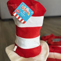 NEW Dr Seuss CAT IN THE HAT Costume Top Hat Red White Striped Tricot NEW$10Monterey Park, CA