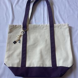 New Simon Shopping Bag Tote Handbag Shoulder Purse Canvas Purple Biege Keychain$15Chino, CA
