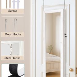 BTEXPERT 47" Mirror Jewelry Cabinet Armoire 6 LED , Large Full Length Jewelry Organizer Storage, Wall-Mounted Door-Hanging , Dove White, Lock Key$129Brea, CA