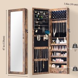 BTEXPERT 47" Mirror Jewelry Cabinet Armoire 6 LED , Large Full Length Jewelry Organizer Storage, Wall-Mounted Door-Hanging , Rustic Brown,Lock Key$149Brea, CA