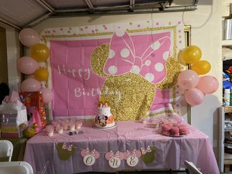 Minnie Mouse backdrop/ balloon Garland/ backdrop setup/ flowers$1Lynwood, CA