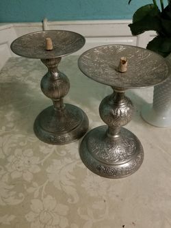 Silver toned solid brass candle pillars$15Pomona, CA