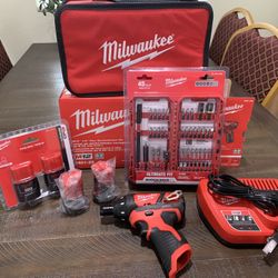 Milwaukee M12 12V 1/4" Hex Screwdriver Kit w/ (4) 1. 5Ah Batteries, Charger, Bag, and Bit Set$145El Monte, CA