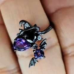 NEW 925ss Mystical Aura Coates Black and Purple amethyst Witch Hat Ringw/dangling bat $40Los Angeles, CA