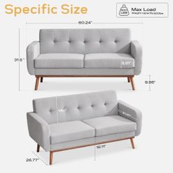 Loveseat Sofa, Mid Century Modern Love Seat Couches for Living Room, Upholstered Love Seats Furniture with Solid Frame Button Tufted Small Couch for B$199Irwindale, CA