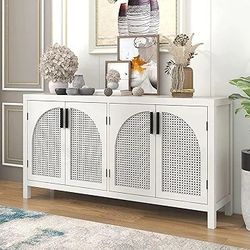 Large Storage Space Sideboard with 4 Artificial Rattan Door Wooden Storage Cabinet with Metal Handles and Adjustable Shelves for Dining Room Living Ro$130El Monte, CA