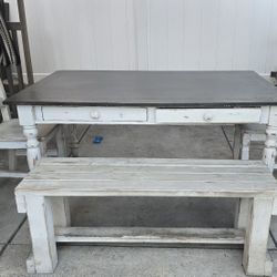 Distressed Farmhouse Dinning Set Table 2 Chairs And Bench $275Lake View Terrace, CA