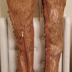 New $40 Size 8 Laced Up Thigh High Boots Light Brown $40Anaheim, CA