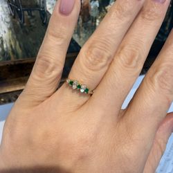 14K Yellow Gold Natural Diamonds And Emeralds Ring Band $395Seal Beach, CA