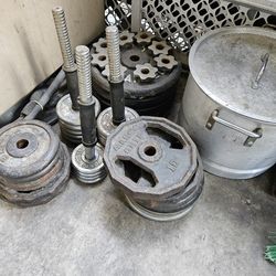 Barbell plates weights bench dumbbells for sale$300West Hills, CA