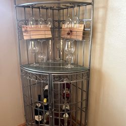 75" Wine Rack With Shelves, Round Wine Cabinet With Hanging Goblet Holder (No Lights)$129Downey, CA