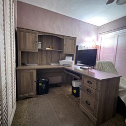 Glass Top Wood Desk $60Beaumont, CA