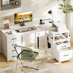 Coleshome L Shaped Computer Desk with 6 Drawers & Power Outlet, 55 Inch Corner Desk with Reversible Storage Shelf & File Drawer, Home Office Desk, Whi$75Ontario, CA