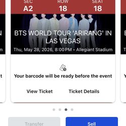 BTS Arirang Tour Tickets - Face Value(see Description) Las Vegas And Los Angeles$400Redlands, CA