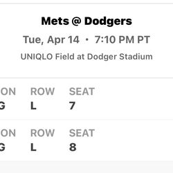 Mets Vs Dodgers April 14th Last Minute Sell$115Riverside, CA