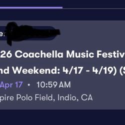 Cochella Tickets For 17-19 Weekend Two Tickets$1,700Beaumont, CA