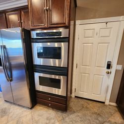 2 GE Profile Ovens w/8ft Cherrywood cabinet $500Riverside, CA