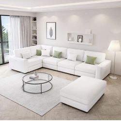 127" White Modular U-Shaped Sofa with Ottoman - Convertible Layout, High-Density Foam & Solid Wood Frame$500Ontario, CA