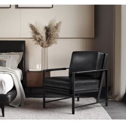 PU Leather Armchair, Retro Leisure Accent Chair with Extra Soft Padded and Cushion, Modern Reading Arm Chair with Black Metal Frame for Living Room/Of$128Fontana, CA