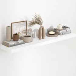 48 Inch Floating Shelf in White, 9.3 Inch Deep Wall Shelves for Bathroom$30Redlands, CA