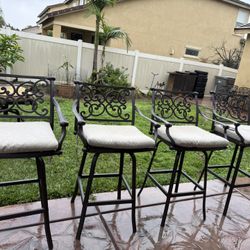 set of 4 heavy cast iron outdoor patio bar stool swivel super sturdy $540Corona, CA