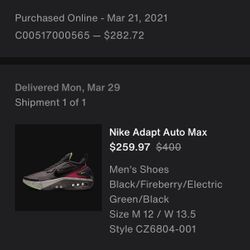 Nike Adapt Auto Max Black Fireberry Size 12$80Riverside, CA