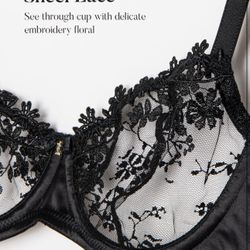 36C Women's Sexy Lace Bra Demi Sheer Mesh Balconette See Through Bralette Unlined Underwire Embroidered$10Fontana, CA