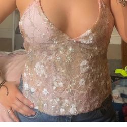 SMALL Women Y2k Sequin Floral Tank Top Sparkle Pearl Embellished Cami Top Sleeveless Rhinestone Crop Top$10Fontana, CA