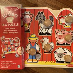 🐮 🧑🌾 🐷 NEW Melissa & Doug Wooden Jumbo Peg Puzzle Animal Farm Friends $22Murrieta, CA