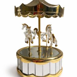 intage Glass Carousel Music Box – 22KT Gold Plated – Hand Sculpted Horses – Rotating Musical Keepsake – Elegant Vanity Decor$100Redlands, CA