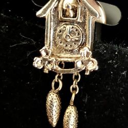 Vintage AVON Cuckoo Clock Gold Tone Lapel Tack Pin Brooch ( Costume Jewelry)
