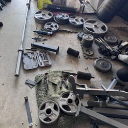245lbs Olympic Weights+ Bench + Barbell $275Menifee, CA