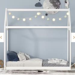 White Twin Size Wooden House Bed, Montessori Floor Bed$70Norco, CA