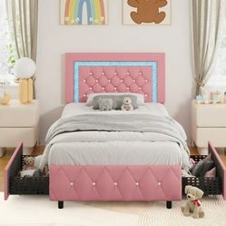 PINK BED FRAME TWIN SIZE WITH LED LIGHT AND 2 DRAWERS👉89.00👈💥 BRAND NEW IN BOX ORIGINAL 💥$89San Bernardino, CA