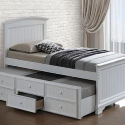 Brand New White Twin Size Bed Frame w Trundle Bed + Drawers $599Rancho Cucamonga, CA