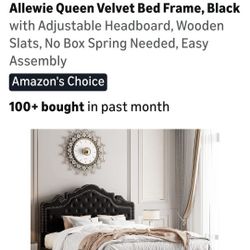 Queen Velvet Upholstered Bed Frame , Wooden Slats Support With Adjustable Headboard Diamond Button Tufted $120Rialto, CA