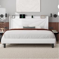 King Bed Frame with 16" Deluxe Wingback & Charging Station, Upholstered Platform Bed with Button Tufted Storage Headboard,White$160Rancho Cucamonga, CA
