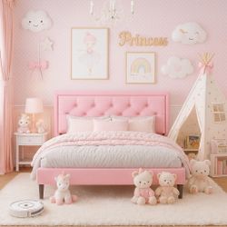 Full Bed Platform Bed Frame with Upholstered Velvet Button Tufted Headboard, Mattress Foundation with Wooden Slat Support, No Box Spring Needed, Easy$90Fontana, CA