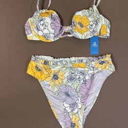 SMALL CUPSHE Bikini Sets 2 Piece Swimsuit High Waisted Bottom Print Ruffle V Neck Bathing Suits$15Fontana, CA