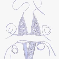 ONE SIZE SILVER METALLIC Mini Monokini Swimwear One-Piece Micro Bikini Set for Women G String Swimsuit Halter Extreme Teddy$10Fontana, CA
