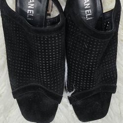 BEVERLY FELDMAN BLACK SUEDE/PATENT LEATHER PEEP TOE HELS$40Glmn Hot Spgs, CA