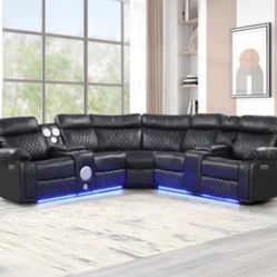 Brand New Super Plush Black Leather Reclining Sectional Set W/LED$1,599Rancho Cucamonga, CA
