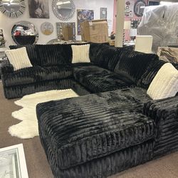 BLACK FUR LIKE CORDUROY SECTIONAL WITH USB CHARGING $650Jurupa Valley, CA