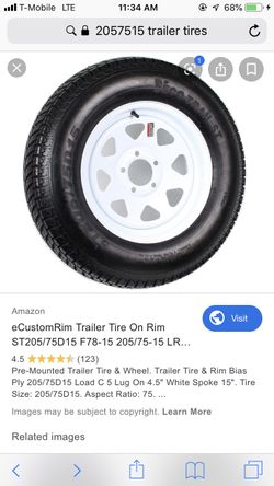 Mounted Radial Trailer Tire and Rim ST205/75R15 8 ply 15X5 5-4.5 White Spoke Wheel $86 No bargain price firm$86San Bernardino, CA