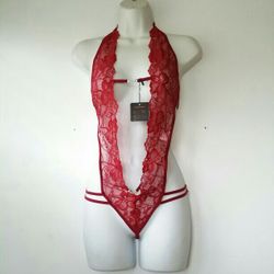 Sexy Bodysuit Lingerie Deep V Teddy One Piece Lace Bodysuit, Red Sz M$6Murrieta, CA